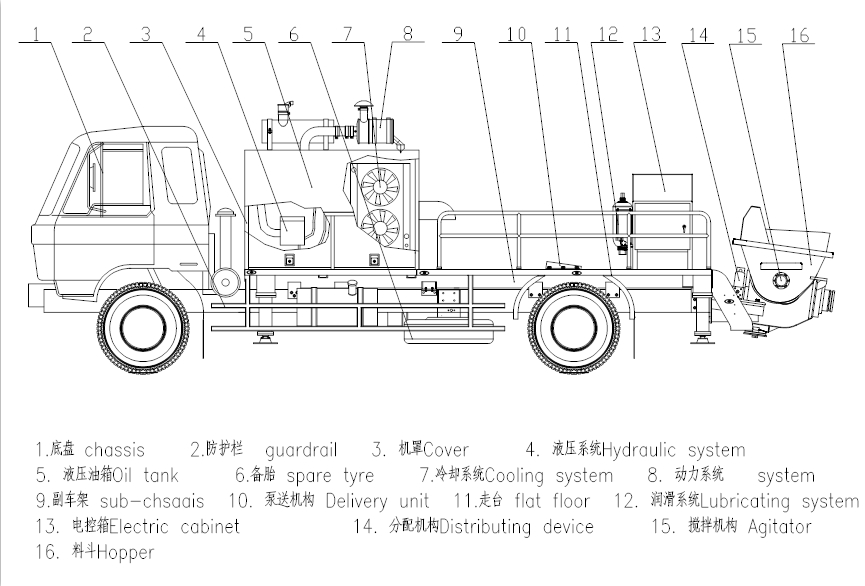 選用國內(nèi)質(zhì)量領(lǐng)先的東風(fēng)底盤,采用世界品牌濰柴道依茨柴油機作為動力,德國進口的力士樂油泵,電氣元件選取也均為國內(nèi)外行業(yè)知名品牌,是一款動力性能好、操作簡單可靠、吸料性強、散熱大的車載式泵車。
