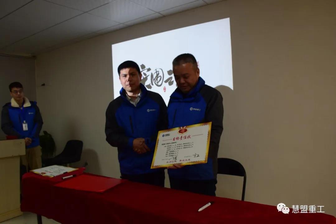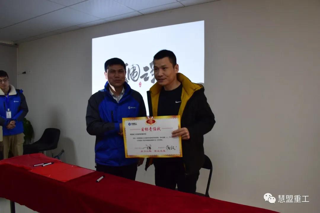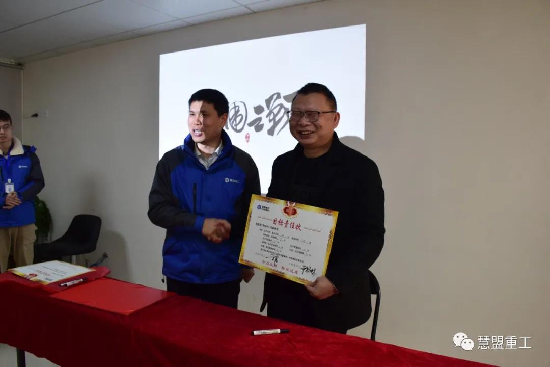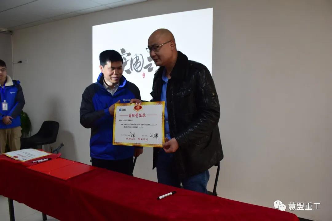 2021年,為強(qiáng)化計(jì)劃管理,深入開展慧盟重工各項(xiàng)工作,達(dá)成戰(zhàn)略目標(biāo);總經(jīng)理方展分別與營銷中心、制造中心、運(yùn)營中心、科技管理部門簽訂了《2021年目標(biāo)責(zé)任書》。