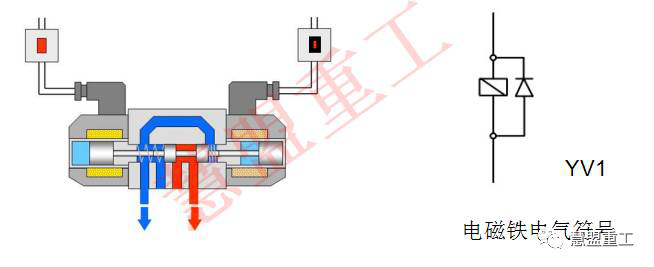 得電的電磁線圈產生電磁力,推動閥芯移動,從而改變液壓油的方向,壓力,流量等;失電后靠彈簧的彈力回到初始位置